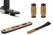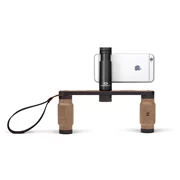 Dual grip Shoulderpod X1 consists of 9 separate parts, and the most important is a universal grip for G1 mobile phones made of anodized aluminum. It is complemented by 2 H1 handles made of sapelli mahogany and other parts with universal mounting elements.