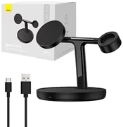 Baseus 3-i-1 MagSafe induktiv laddare gör att du snabbt och säkert kan förnya energin i iOS- och Android-enheter, men är också ett utmärkt stativ för förvaring av små tillbehör. Produkten gör att du kan ladda din smartphone, smartwatch eller trådlösa hörlurar samtidigt, och tack vare 16 stora magneter behöver du inte oroa dig för säkerheten för den laddade utrustningen - den magnetiska induktionen är 2800 Gs.