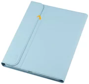 Det utfällbara fodralet kan användas som ett stativ, och med möjligheten att väcka och försätta enheten i viloläge sparar det batteriström.