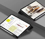 Tack vare det dragspelsformade skyddet på framsidan av fodralet får vi ett skydd för skärmen och tack vare tekniken för att väcka och försätta enheten i viloläge kan vi säkerställa en något längre batteritid. Fodralet kan också fungera som ett stativ för bekvämare användning av enheten.