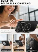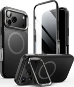 Fodralet är helt kompatibelt med MagSafe-tekniken - tack vare den inbyggda magnetringen ger det snabb laddning och en stabil fastsättning av MagSafe-tillbehör. Dessutom finns det ett integrerat stativ bredvid kameramodulen, vilket gör att telefonen kan placeras bekvämt i horisontellt läge - perfekt för att titta på film eller ringa videosamtal.