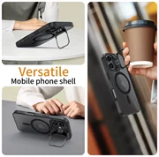 Den klassiska genomskinliga ytan förstärker enhetens ursprungliga design och ger den ett elegant utseende.Förutom det upphöjda standardskyddet runt linserna är fodralet dessutom utrustat med en öppningsbar metallram som enkelt kan omvandlas till ett funktionellt stativ. Detta gör att du bekvämt kan titta på videor, visa foton eller ringa videosamtal.