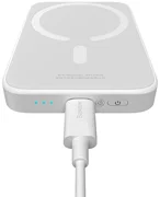 The product has blue LED indicators that will inform you about the battery level - a discharged powerbank will not surprise you anymore. The non-slip silicone finish ensures stability and makes the product pleasant to the touch. What's more, it meets international safety standards, so you can take it with you on airplane travel. For more efficient charging, it is recommended to use the Baseus Magnetic or Apple Magsafe magnetic case.
