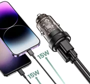 Tech-Protect CC30W är en tvåportars billaddare utrustad med uttag med en total uteffekt på 30W. En av portarna är en typisk USB-A med QuickCharge 3.0 snabbladdningsstandard, medan den andra är USB-C med implementerad PowerDelivery-teknik.