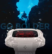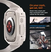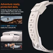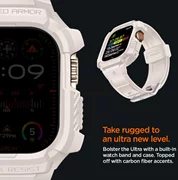 Comfortable belt with a sporty flairSpigen Rugged Armor ProMade from flexible TPU material decorated with carbon fibre accents. It features an integrated case with accentuated edges to protect the watch envelope from scratches and impacts. The strap is fully functional and adjustable to suit individual needs.